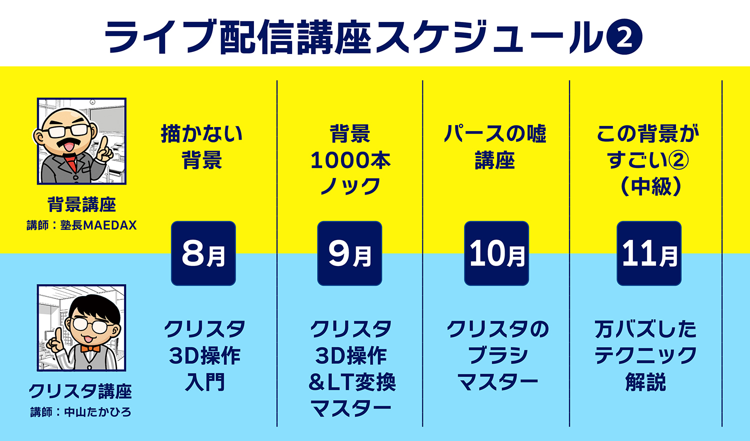 毎月2回、背景作画とクリスタに関連した講座をライブ配信でお届けします。