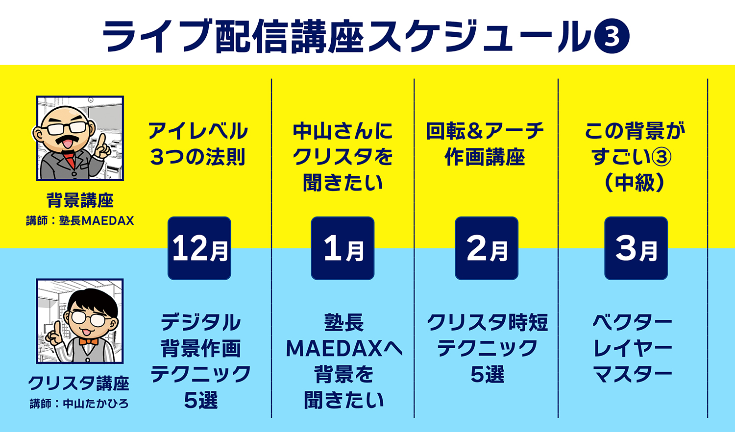 月替わりで1年間にわたり、様々な講座をライブ配信します。もちろんアーカイブでの視聴可。